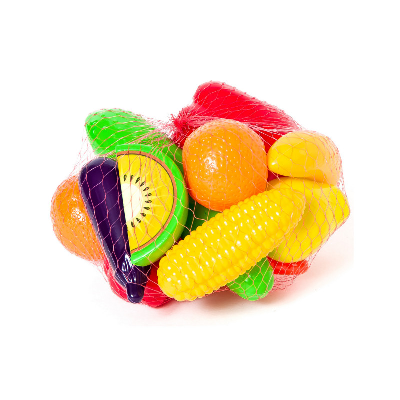 Набір предметів ігрового ужитку - набір фруктів і овочів, 16 предметів, діаметр упаковки набору -180 мм, маса - 0,14 кг, споживча упаковка - сітка полімерна.