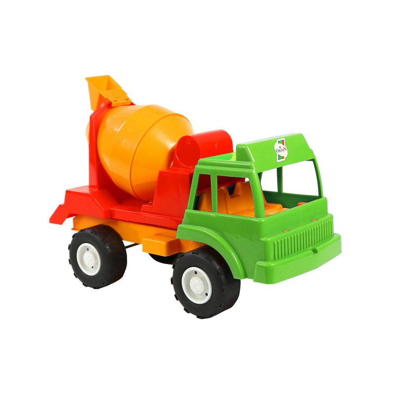 Іграшка транспортна, будівельна техніка - бетономішалка на автомобільному двухосном шасі, довжина - 365 мм, ширина 175 мм, висота - 240 мм, маса - 0,537 кг, споживча упаковка - сітка п / мірна.