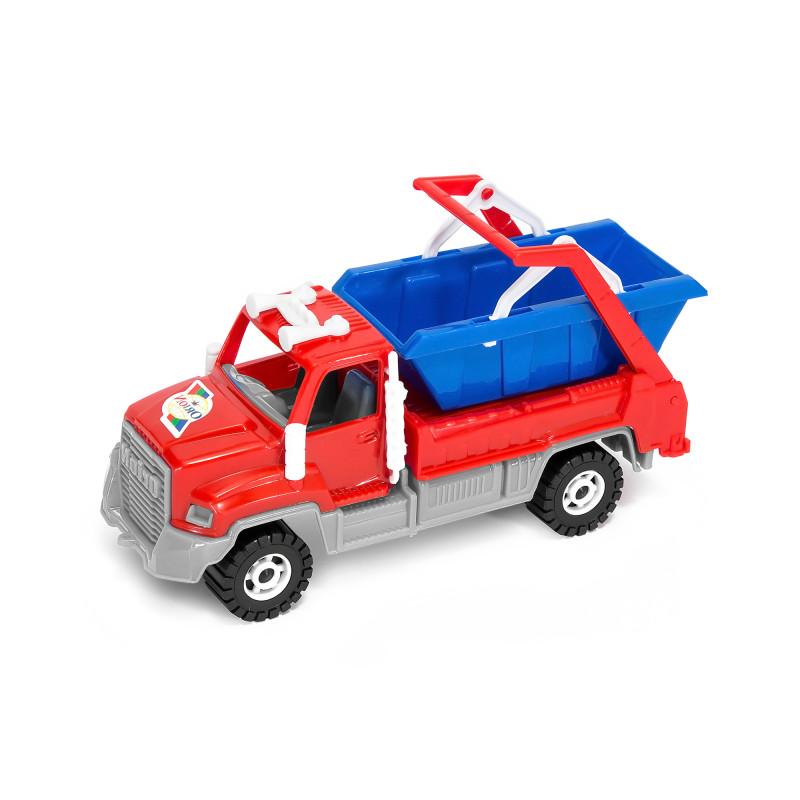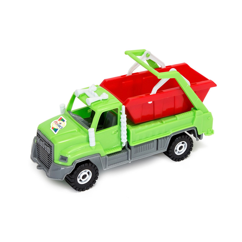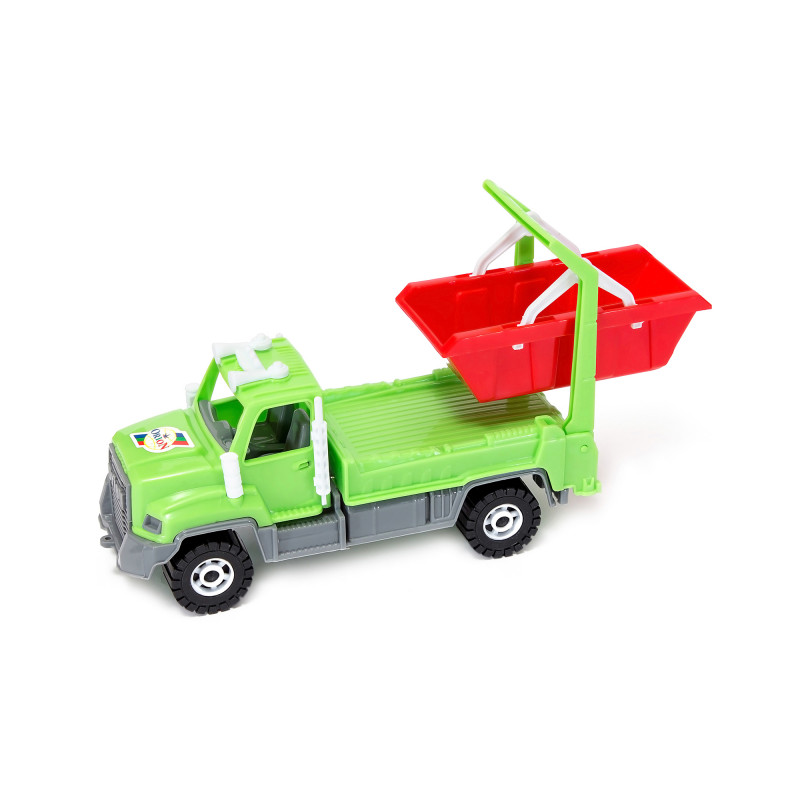 Іграшка транспортна, комунальна машина, довжина - 250 мм, ширина 90 мм, висота - 135 мм, маса - 0,197 кг, споживча упаковка - сітка полімерна.Дана модель іграшки виготовляється на основі попередньої моделі Камакс-Н арт. 115, але замість кузова на шасі встановлюється платформа комунальної з кузов комунальної. Кузов встановлюється на платформу за допомогою важеля з двома коромислами. Кузов може переміщатися з платформи на горизонтальну площину за ручку важеля. Іграшка має два яскравих кольорових дизайну.
