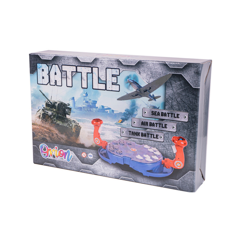 Игра состоит из пластмассового поля, разделённого на 2 равные части, прозрачной крышки сверху поля, установленных с двух противоположных сторон ствола с пусковым устройством. В корзинку пускового устройства насыпью помещаются шарики одного цвета, а в другую – шарики другого цвета. Всего шариков 30 шт., по 15 шт. двух цветов. Каждый из 2-х игроков имеет по 8 единиц боевой техники одного цвета (2 вида фигурок – корабли большие и малые по 4 шт. для арт. 670, самолёты большие и малые по 4 шт. для арт. 687 и танки большие и малые по 4 шт. для арт. 694). Фигурки игрок размещает на своей половине поля по своему желанию в гнездо на крышке игрушки. Выстрел осуществляется нажатием на рычаг пускового устройства. Игрок наводит ствол пускового устройства на цель, производит выстрел шариком, стараясь выбить из гнезда фигурку боевой техники противника. Правила игры приводятся в инструкции. Игровое поле оклеивается цветными наклейками с изображениями согласно названию игры. Настольная игра поставляется в цветном картонном коробе с ручкой. Основные детали игрушки изготавливаются методом литья под давлением из полипропилена и имеют яркие цвета. Прозрачная крышка изготавливаются методом литья под давлением из полистирола.