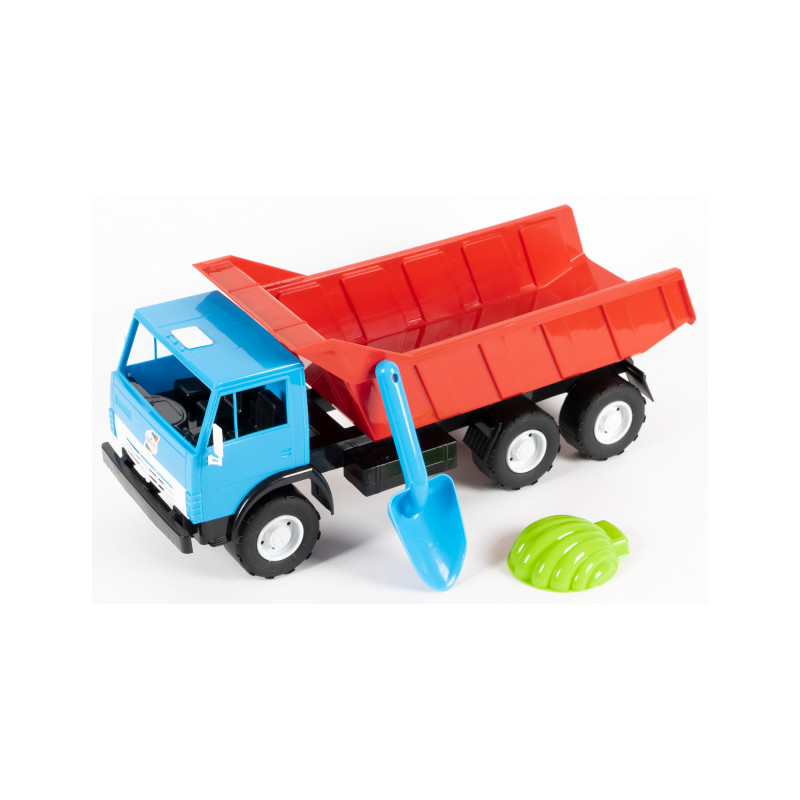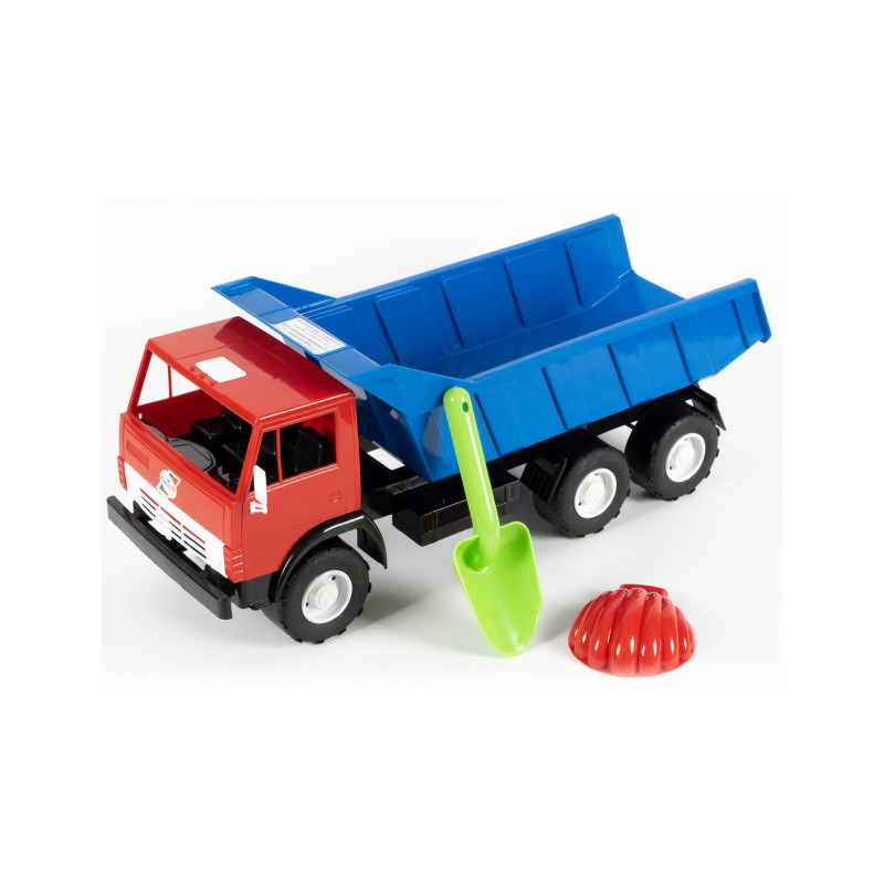 Игрушка транспортная, самосвал трёхосный, длина – 505 мм, ширина 195 мм, высота – 215 мм, масса – 0,76 кг, потребительская упаковка – сетка полимерная.