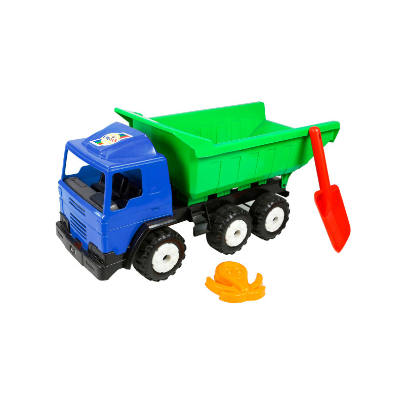 Игрушка транспортная – самосвал трёхосный, длина – 615 мм, ширина 250 мм, высота – 295 мм, масса – 1,43 кг, потребительская упаковка – пакет из плёнки ПВХ.