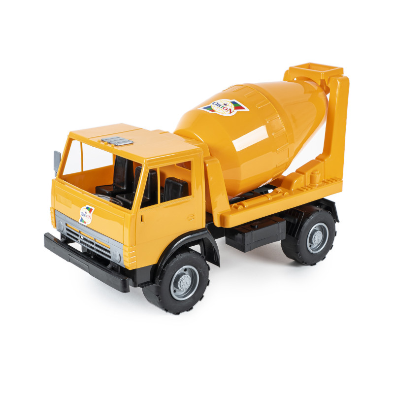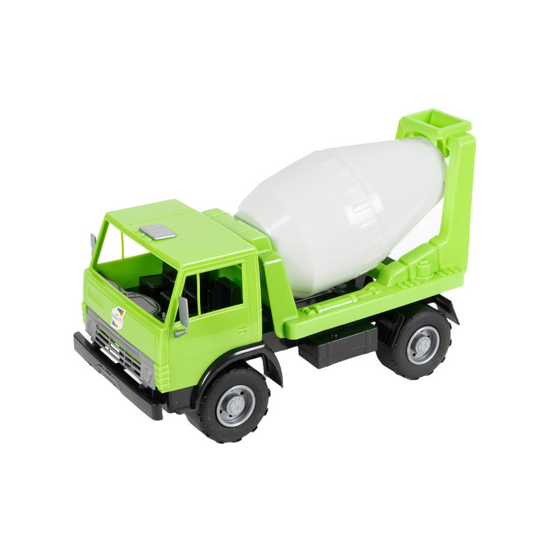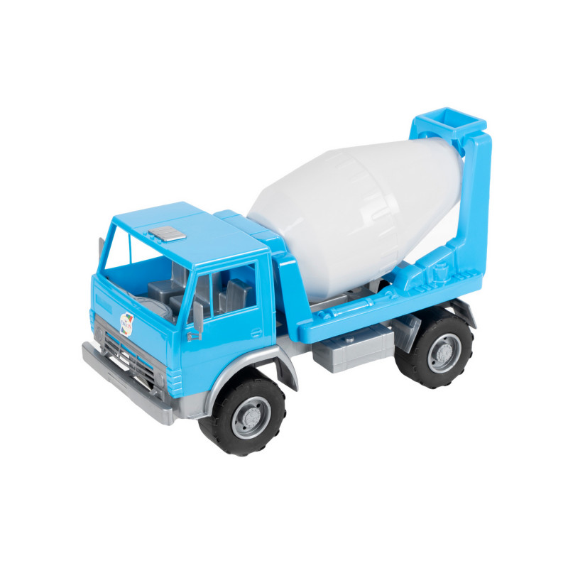 Игрушка транспортная, строительная техника – бетономешалка на автомобильном двухосном шасси, длина – 370 мм, ширина 195 мм, высота – 225 мм, масса – 0,615 кг, потребительская упаковка – сетка полимерная.