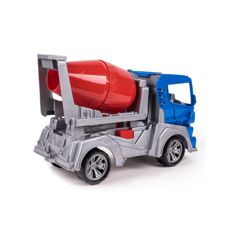 Данная модель игрушки отличается от предыдущей модели игрушки с арт. 018 только тем, что вместо кузова самосвала на шасси устанавливается платформа бетономешалки с бочкой. Бочка состоит из корпуса и горловины. Бочка может вращаться вокруг собственной оси. Все детали изготавливаются методом литья под давлением из полипропилена. Игрушка выпускается в 3-х цветовых дизайнах.